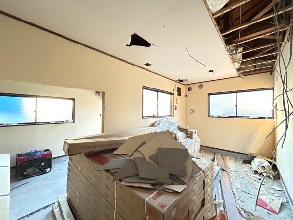 【リフォーム中写真11/16撮影】北西側、現在約9帖のスペースは7.5帖の洋室とクローゼットに変更する予定です。床はフローリング、壁と天井はクロスで仕上げます。