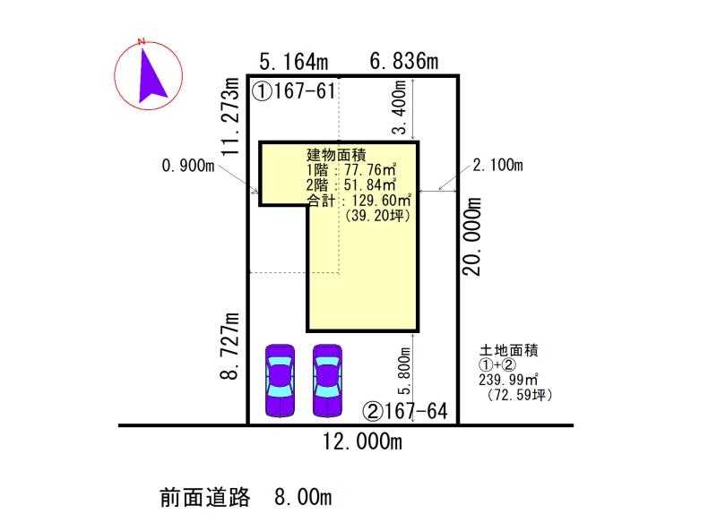 | 土地権利 | 所有権 | 私道負担・道路 | 無、南8m幅(接道幅12m) | ||