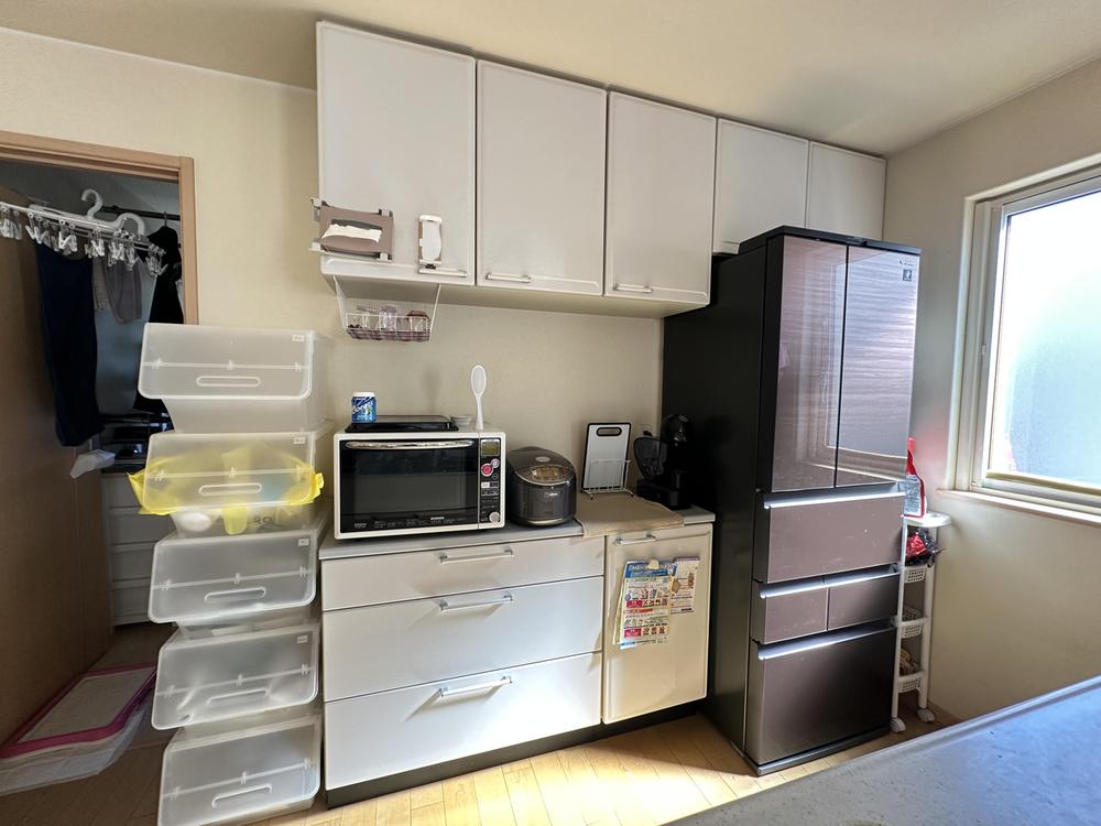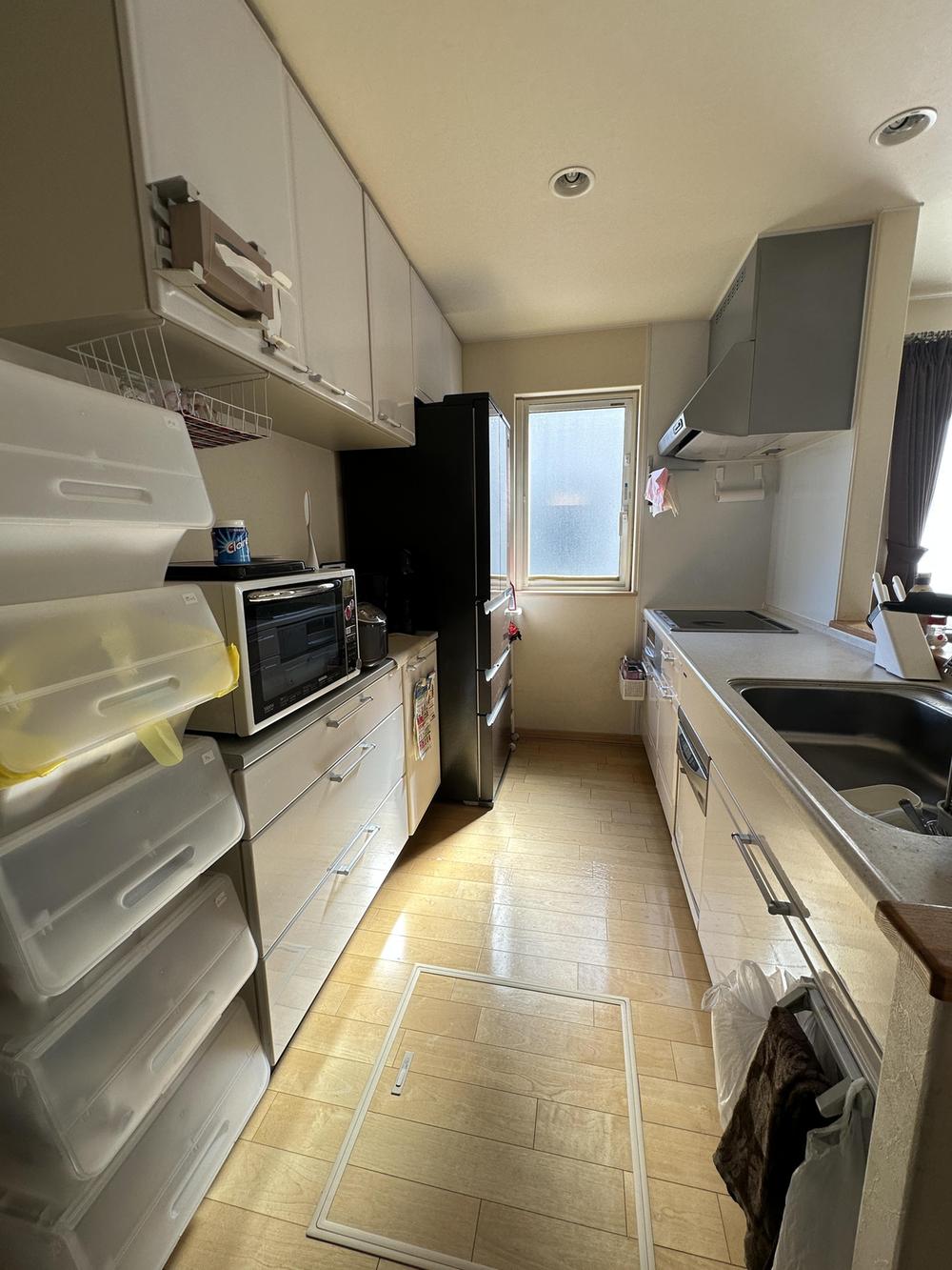 【キッチン】広々とした人気の対面式キッチンです。奥に窓が付いているので、匂いが気になる場合は換気をして空気の入れ替えができます。また、便利な床下収納があり、食材のストック置き場にも困りません♪