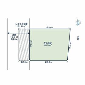 | 私道負担・道路 | 備考に記載 | 接道状況 | 西 4.0m 私道 接面7.3m 位置指定有 | ||