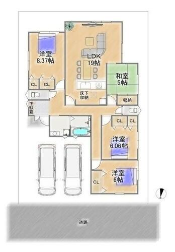| 私道負担・道路 | - | 接道状況 | 北 6.0m | ||