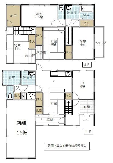月々のローン返済額を試算5DK+店舗、店舗部分約16帖、バス・洗面脱衣所・トイレが2か所あります。