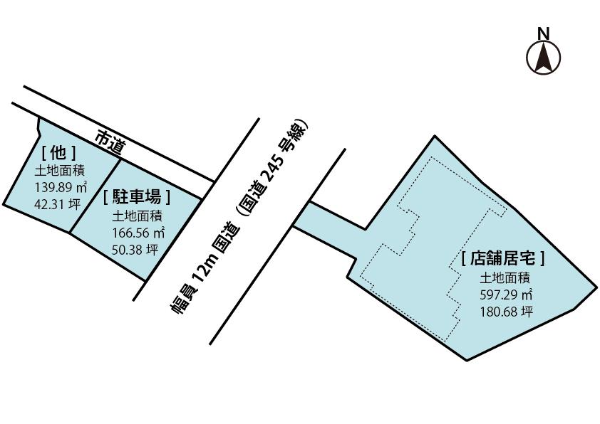 | その他制限事項 | *現況有姿 *売主の契約不適合責任免責 *トイレ、風呂、キッチン等水回り他の補修要 *新築年月日は本体店舗居宅増築年月日 *本物件には、道路を挟んだ反対側の土地2筆も別途含まれます(駐車場6台分:面積166.56㎡、他:面積139.89㎡) *法22条区域 *日立市がけ条例確認要(北側・東側隣地部分、駐車場136と137との間) *西側公道に拡幅計画あり(計画図面上で約1m位道路拡幅の可能性有、計画段階のため未確定) | ||||