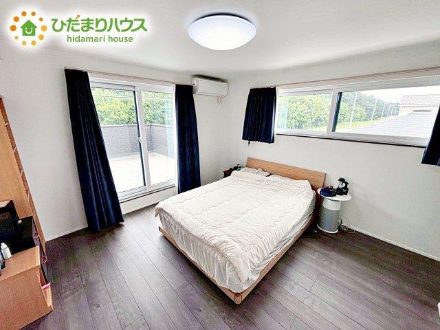 主寝室は広々していて安らげる空間に。大きな窓から光が差し込み、朝の目覚めも良さそう♪