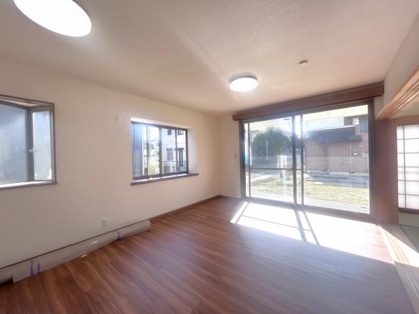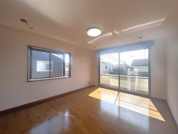 【内外装リフォーム中 11/8更新】2階南側洋室の別アングルの写真です。元々約13帖のお部屋を壁で仕切り、約6.5帖のお部屋を2部屋にしました。床クリーニング、クロス張替、照明交換致します。