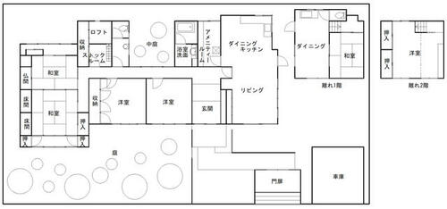 備考 | 附属建物の離れ2DK及び井戸が有ります。附属建物1車庫:鉄筋コンクリート造陸屋根平家建て21.60㎡附属建物2車庫:木造スレート葺2階建て60.17㎡・私道負担:なし・敷地面積650.70㎡(196.83坪)、建物平家建て173.21㎡(52.39坪)、離れ建物2階建て60.17㎡(18.20坪)と広々とした敷地と居室空間♪閑静な住宅街の住戸と落ち着いた庭園♪・仲介手数料:売買代金の3.3%+66,000円 |