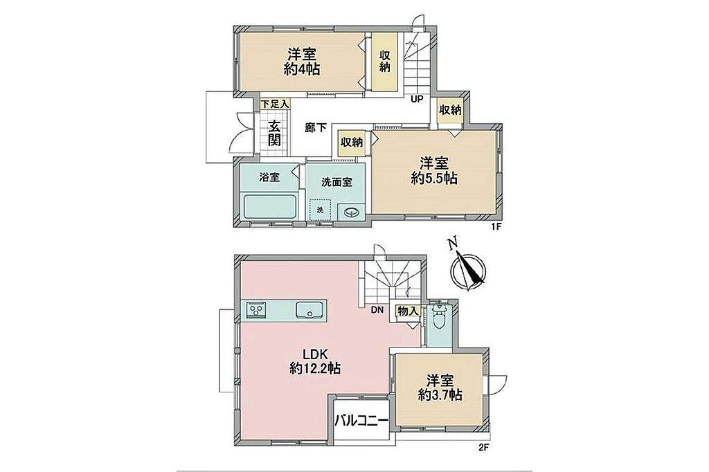 建物構造 | 木造/2階建 | 間取り詳細(帖) | リビングダイニングキッチン 12.2帖(1階)洋室 3.7帖(1階)洋室 5.5帖(2階)洋室 4帖(2階) | ||