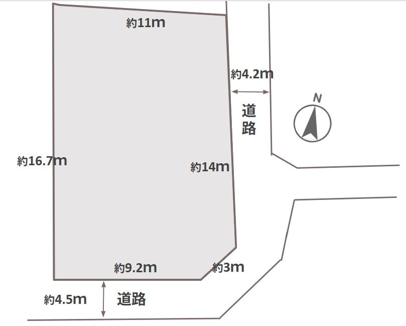 | 土地権利 | 所有権 | 私道負担・道路 | 無、南4.5m幅(接道幅9.2m)、東4.2m幅(接道幅14m) | ||