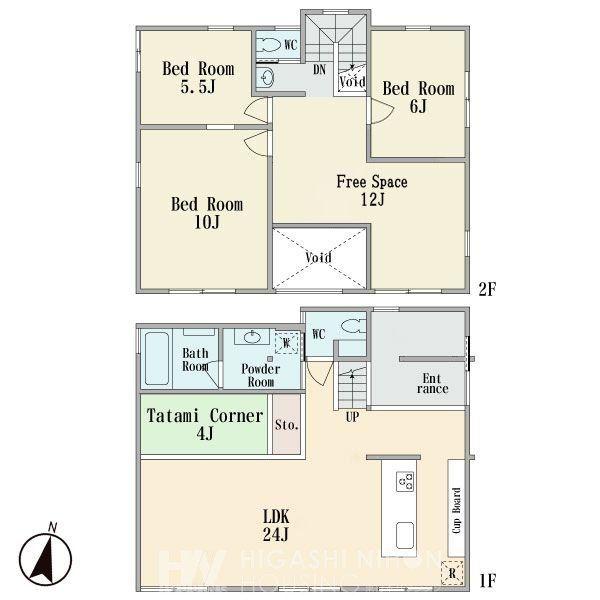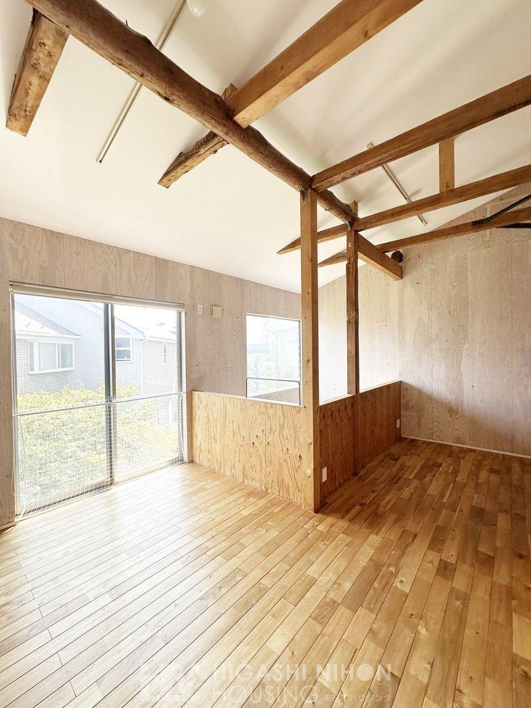 2階には収納代わりに12帖ほどの広さがあるフリースペースをご用意。窓に面した開放感のある空間は、ご家族のニーズに合わせ自由に活用して頂ける文字通り自由な空間。間仕切りをしてお部屋としての利用も可能です