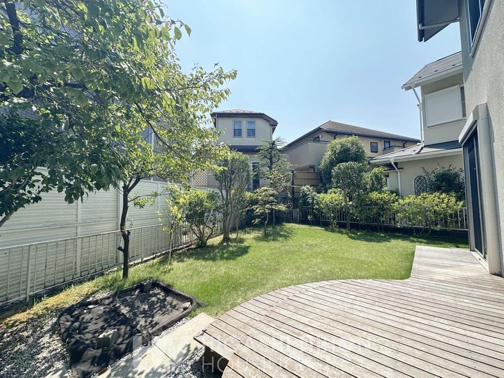 お庭スペースは南向きで陽当り良好!ガーデニングなど趣味の時間に没頭できるプライベートな空間。建物から続くウッドデッキは腰を掛けてのんびりティータイムにも最適。砂場もあってお子様の遊び場としても◎