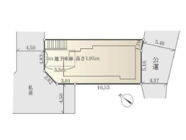 | 接道状況 | 二方(除角地)、南東4.3m幅、北西4.5m幅 | セットバック | なし | ||