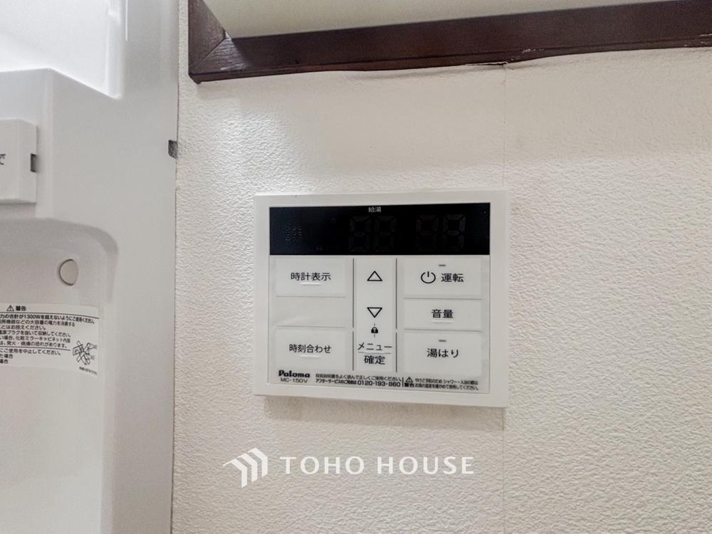 お風呂場と台所に操作リモコンがあり、キッチン近くにある給湯リモコンは、お料理の最中でもリビングで寛いでいるなかでもボタン一つで簡単に沸かせて便利ですね。