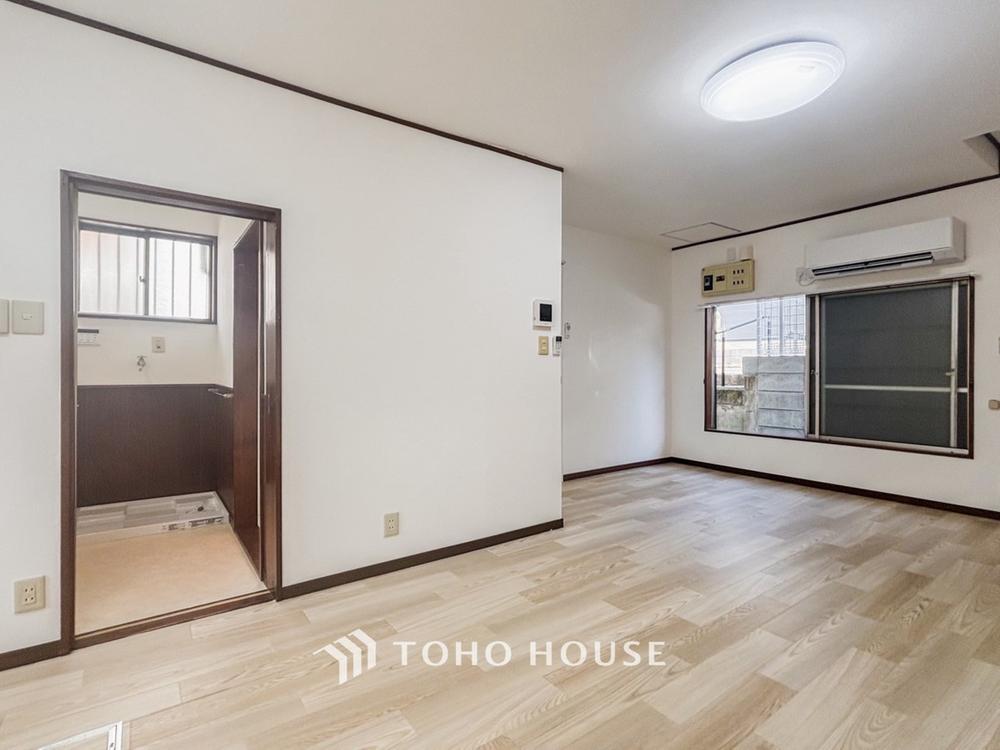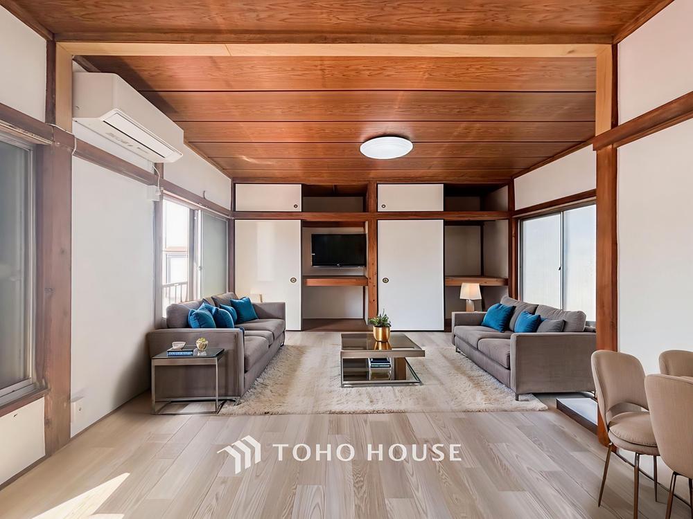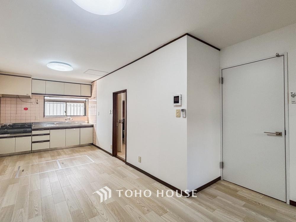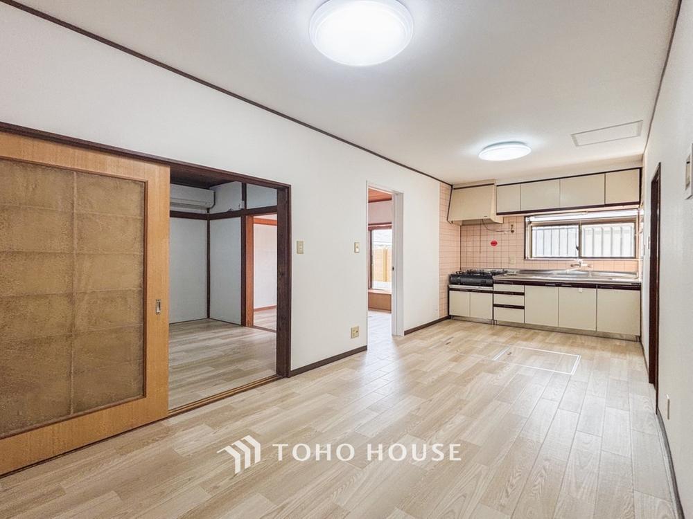 【Living room】明るく開放的な空間が広がるLDK。室内には豊かな陽光が注ぎ込み、爽やかな住空間を演出。ホームパーティーでもゲストと一緒に料理を楽しみながら楽しい時間を過ごせそう。