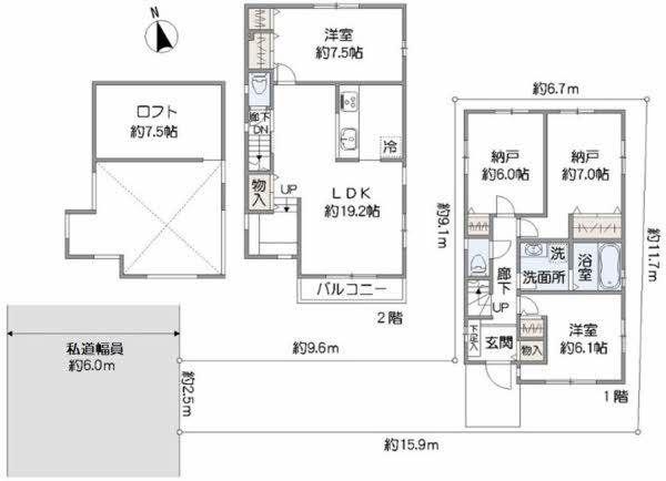 | 土地権利 | 所有権 | 私道負担・道路 | 無、西6m幅(接道幅2.5m) | ||