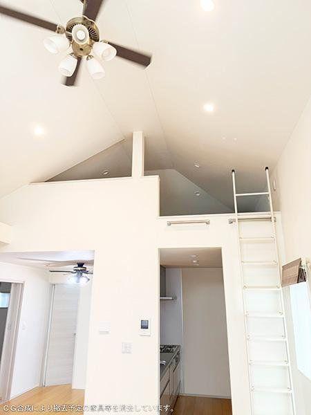【ロフト】LDK上部に、約7.5帖のロフトが設けられています。寛ぎスペースや普段使わない物の収納場所としても活用できます。※CG合成により撤去予定の家具等を消去しています。/2025年10月撮影