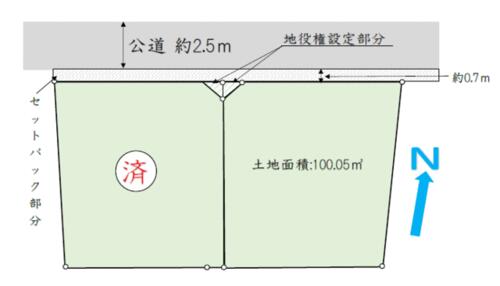 | 私道負担・道路 | - | 接道状況 | 北 2.5m 公道 | ||