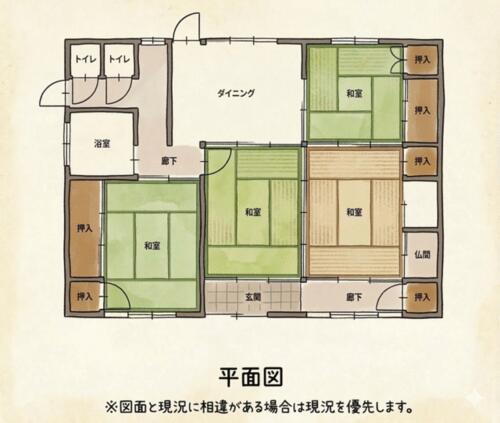| 備考 | セットバック:有・【南国市物部】約149坪の広大な敷地に建つ、人気の平屋4DK!お庭での家庭菜園やドッグランなど、田舎暮らしを満喫できます。790万円とお得に購入し、自分好みにリノベーションしたい方にぴったりです♪ | ||||