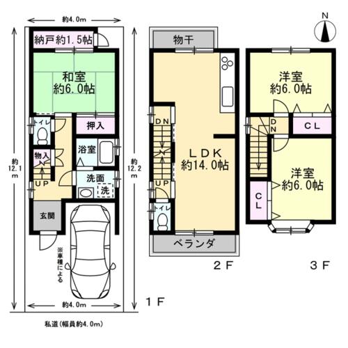| 私道負担・道路 | - | 接道状況 | 南 4.0m 私道 接面4.0m 位置指定有 | ||