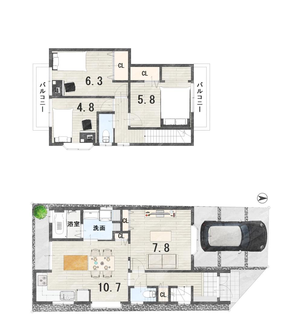 | 土地権利 | 所有権 | 私道負担・道路 | 無、北5.8m幅(接道幅3.4m)、東4.8m幅(接道幅12.2m) | ||