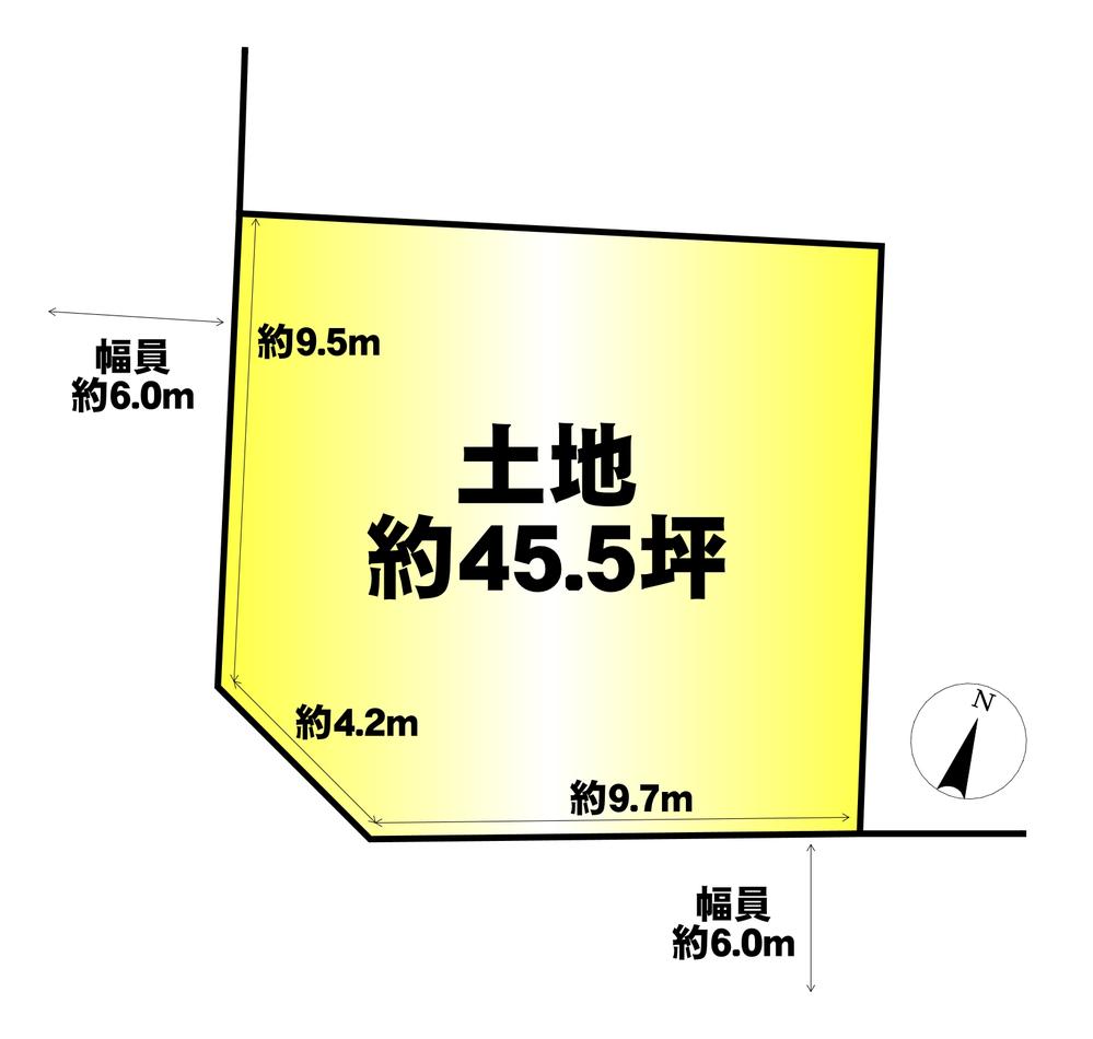 | 土地権利 | 所有権 | 私道負担・道路 | 無、西6m幅(接道幅9.5m)、南6m幅(接道幅9.7m) | ||