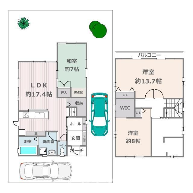 | 土地権利 | 所有権 | 私道負担・道路 | 無、北6m幅(接道幅7m)、西6m幅(接道幅13.8m) | ||
