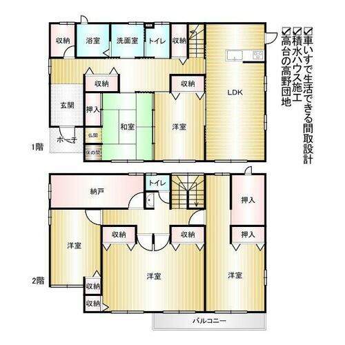 | 備考 | 私道負担:なし・【車いすでの生活可能な間取設計】 ■積水ハウス施工 ■車椅子で生活可能なバリアフリー住宅 ■2023年エアコン6台新設 ■スーパーまで徒歩約8分・駅まで徒歩約13分 ■ハウスクリーニング後の引渡し まずはお気軽にお | ||||
