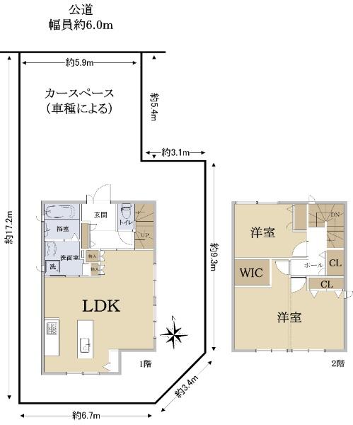 | 土地権利 | 所有権 | 私道負担・道路 | 無、北6m幅(接道幅5.9m) | ||