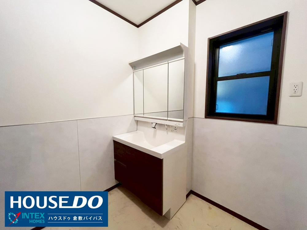 【清潔感あふれる洗面台で、朝の準備もスムーズに!】三面鏡付きで収納力も抜群の洗面化粧台です。小窓があり、換気ができるのも嬉しいポイント!いつも清潔に使えますね♪