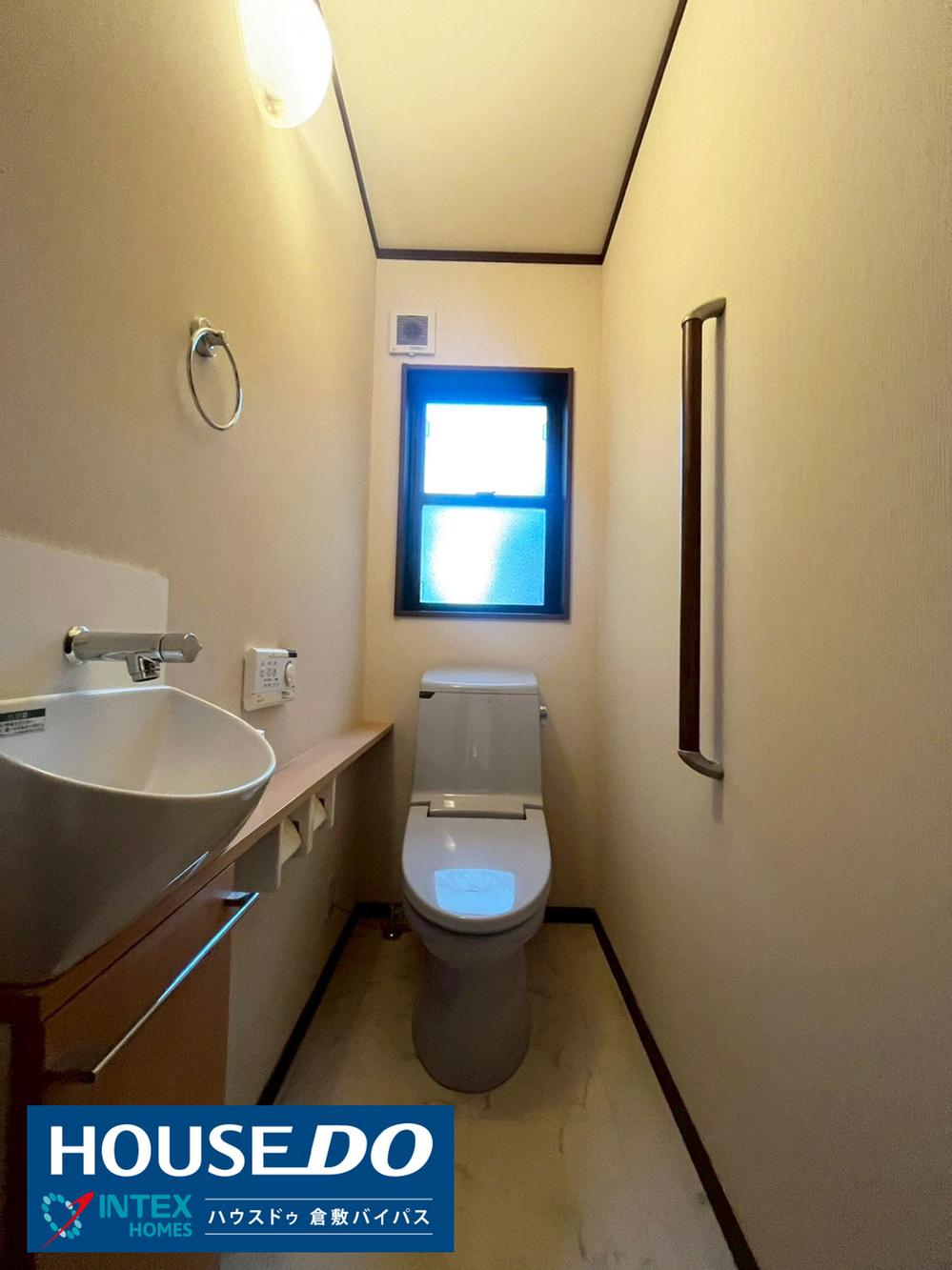 【手すり付きで安心!手洗い器も備えた機能的なトイレ☆】温水洗浄便座付きで快適なトイレ空間◎手すり付きで安心な上、手洗い器と小窓もあっていつも清潔に保てます!