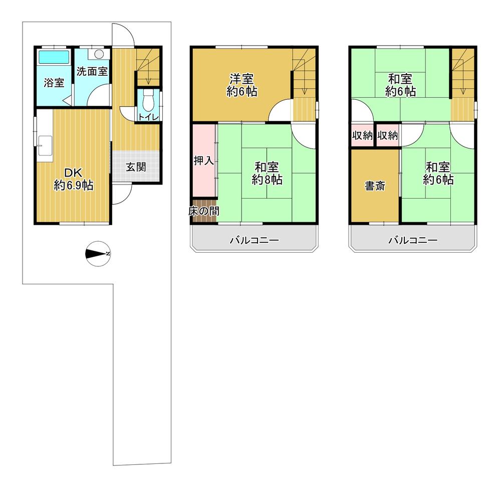 | 土地権利 | 所有権 | 私道負担・道路 | 無、東6.8m幅(接道幅2m) | ||