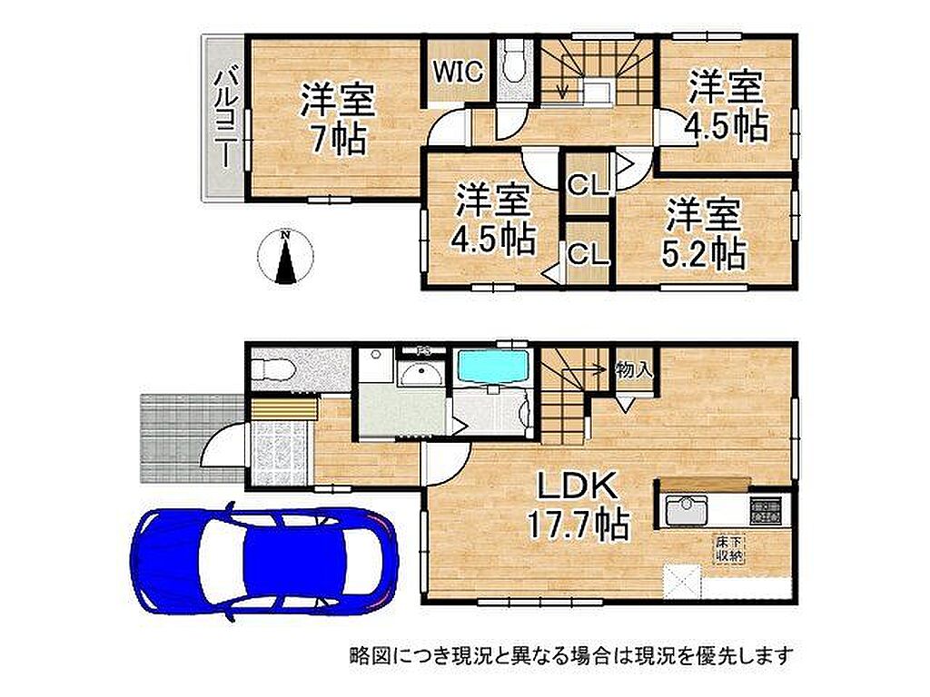 | 設備・サービス | バルコニー、フローリング、ウォークインクローゼット、床下収納、下水、都市ガス、公営水道、室内洗濯機置場、専用トイレ、専用バス、洗面所独立 | ||||