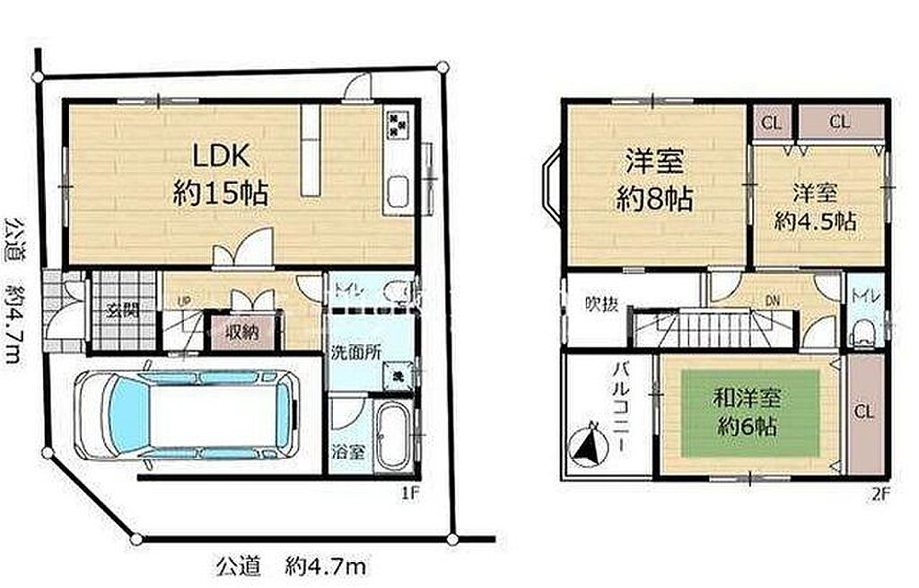 | 建物構造 | 木造/2階建 | 間取り詳細(帖) | リビングダイニングキッチン 15帖(1階)洋室 8帖(2階)洋室 4.5帖(2階)洋室 6帖(2階) | ||