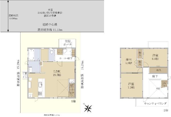 | 土地権利 | 所有権 | 私道負担・道路 | 無、北東6m幅(接道幅11.1m) | ||