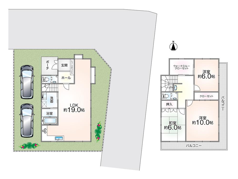 | 土地権利 | 所有権 | 私道負担・道路 | 無、東4m幅(接道幅8.5m)、北4m幅(接道幅9.4m) | ||