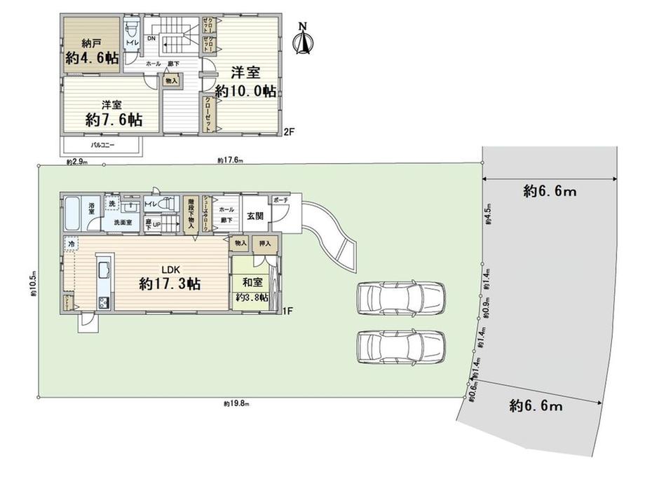 | 土地権利 | 所有権 | 私道負担・道路 | 無、東6.6m幅(接道幅10.6m) | ||