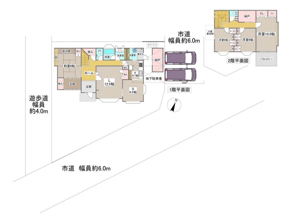 土地権利 | 所有権 | 私道負担・道路 | 無、南6m幅、東6m幅、南西4m幅 | ||