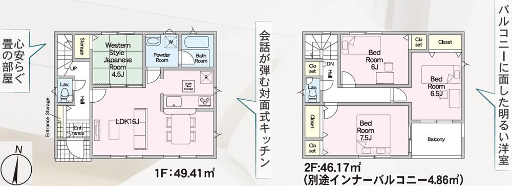 (1号棟)、価格2300万円、4LDK、土地面積149.37㎡、建物面積95.58㎡