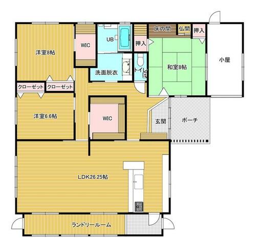 | 備考 | 鍋島地区に佇む令和2年築の平屋住宅。26帖の開放的なLDKに加え、豊富な収納スペースを完備。ゆとりある8帖の和室やランドリールームも備え暮らしに快適さをプラス。落ち着いた和風の外観が魅力の一邸です。 | ||||
