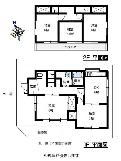 | 土地権利 | 所有権 | 私道負担・道路 | 共有持分94㎡×(1/6)、西4.5m幅(接道幅8m)、南4.2m幅(接道幅9m) | ||