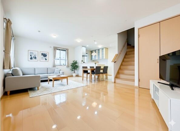 【リビング】 整然とした空間演出、快適な理想の暮らしの実現は家のみの拘りではなく、そこで暮らす方々にとって素敵な環境であることも挙げられると思います。四季折々の変化が奏でる鼓動を楽しんで下さい。