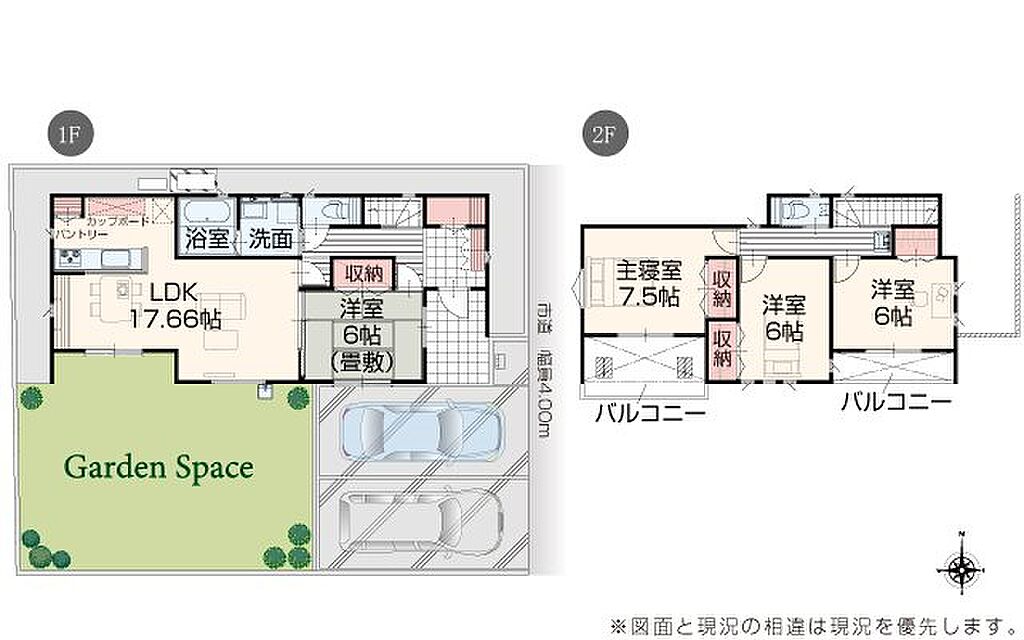| 建物構造 | 木造/2階建 | 間取り詳細(帖) | 洋室 7.5帖(2階)洋室 6帖(2階)洋室 6帖(2階)和室 6畳(1階)リビングダイニングキッチン 17.6帖(1階) | ||