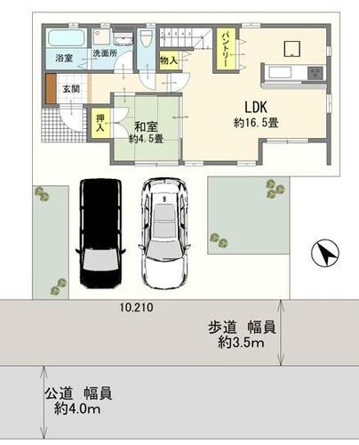 | 私道負担・道路 | - | 接道状況 | 南西 4.0m 接面10.2m | ||