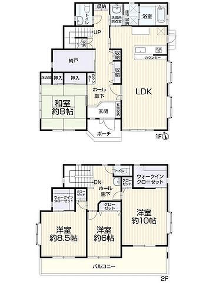 建物構造 | 木造/2階建 | 間取り詳細(帖) | リビングダイニングキッチン(1階)和室 8畳(1階)洋室 10帖(2階)洋室 8.5帖(2階)洋室 6帖(2階) | ||