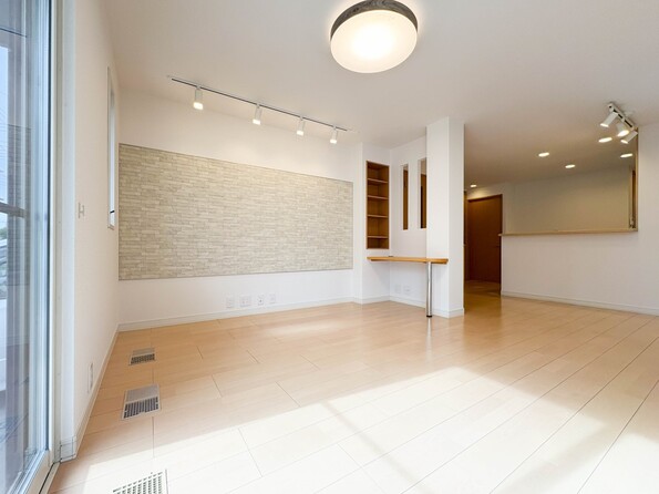 【リビング】光が溢れ、風も溢れ、居心地のよい住空間、自然体で過ごせる住空間にリビングを。それは住むというシンプルなカタチをどこまでも追求してきた結果です。新築の厳かな居住性を身体全体で感じてください。