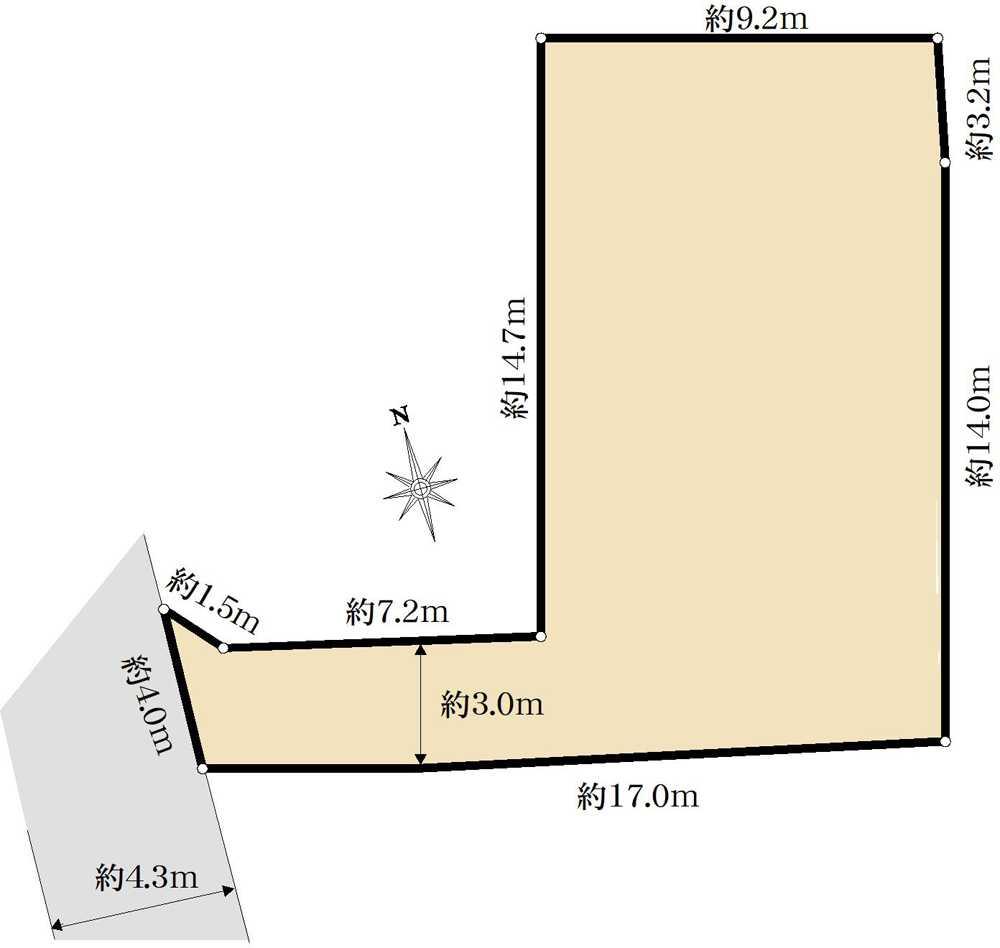 | 土地権利 | 所有権 | 私道負担・道路 | 無、西4.3m幅(接道幅3m) | ||