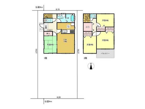 | 私道負担・道路 | - | 接道状況 | 南 4.1m 公道 接面8.0m北 4.0m 公道 接面8.0m | ||
