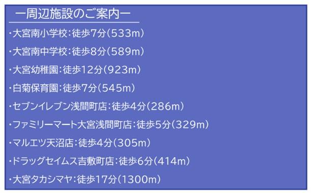 JR宇都宮線「大宮」歩19分 JR宇都宮線「さいたま新都心」歩19分 東北新幹線「大宮」歩19分 | ||||
