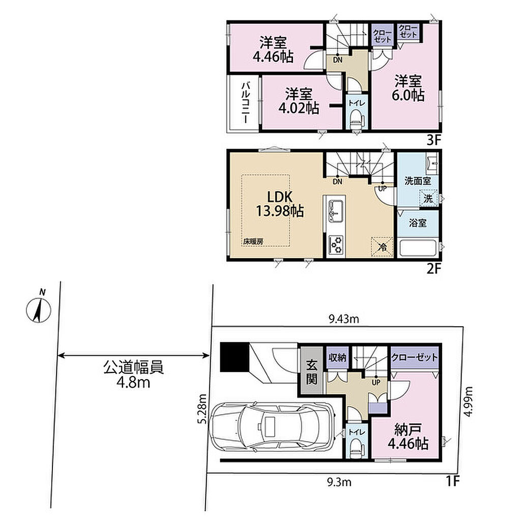 | 建物構造 | 木造/3階建 | 間取り詳細(帖) | リビングダイニングキッチン 13.9帖洋室 6帖洋室 4.4帖洋室 4帖収納 4.4帖 | ||