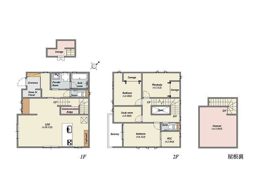 建物構造 | 木造/2階建 | 間取り詳細(帖) | リビングダイニングキッチン 20.1帖(1階)洋室 6.1帖(2階)洋室 3.8帖(2階)収納 3.1帖(2階)収納 5.1帖(2階)その他 12.1帖(3階) | ||