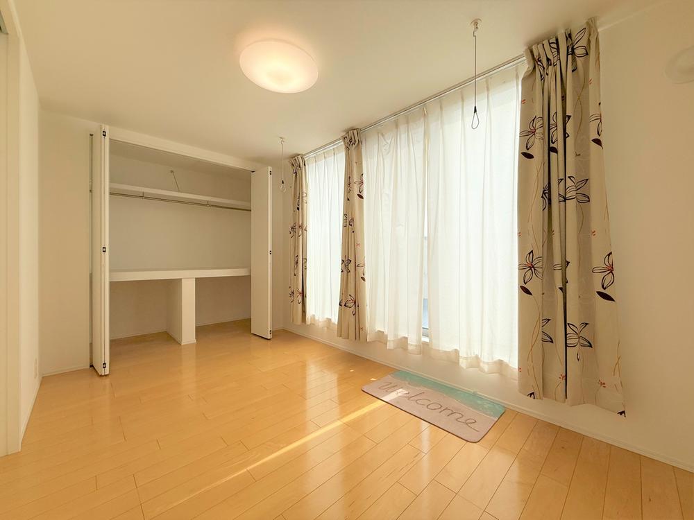 【洋室-機能的】衣類だけでなく、バックやシーズンオフの物、掃除道具などを収納できるクローゼットや室内物干しがついている機能的な空間でございます!このお部屋からバルコニーへ出ることもできます!